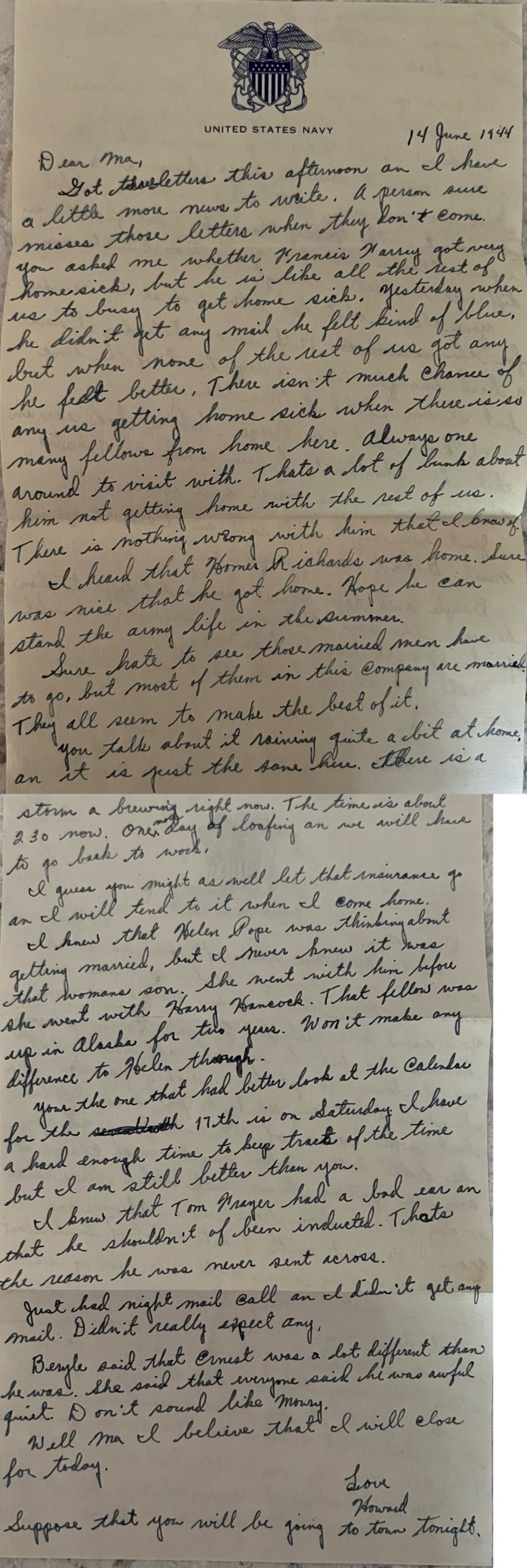 Got your letter today and was glad to hear that you got home alright. Don’t have to worry much about those things when you have Junior along. He sure is hardy.