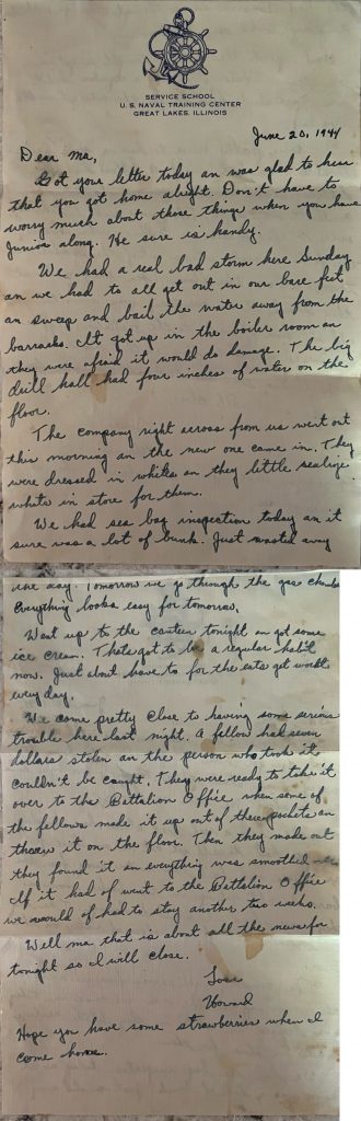 Got your letter today and was glad to hear that you got home alright. Don’t have to worry much about those things when you have Junior along. He sure is hardy.