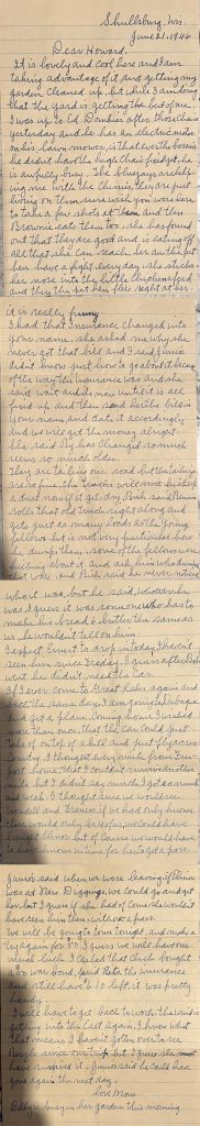 It is really funny. I had that Insurance Changed into your name, she asked me why she never got that bill and I said Junior didn’t know just how to go about it, because of the way the Insurance was and she said wait awhile now until it is all fixed up and then send her the bill, in your name, and date it accordingly and we will get the money alright. She said Bush has Changed so much seems so much older. They are tailing our road but the tailings are so fine, the trucks will sure kick up a dust now if it gets dry. Bush said Bennie rolls that old truck right along and gets just as many loads as the young fellows but is not very particular how he dumps them. some of the fellows were kicking about it and asked him who dumped that way, and Bush said he never noticed who it was, but he said, whoever he was I guess it was someone who has to make his bread & butter the same as us, he wouldn’t tell on him.