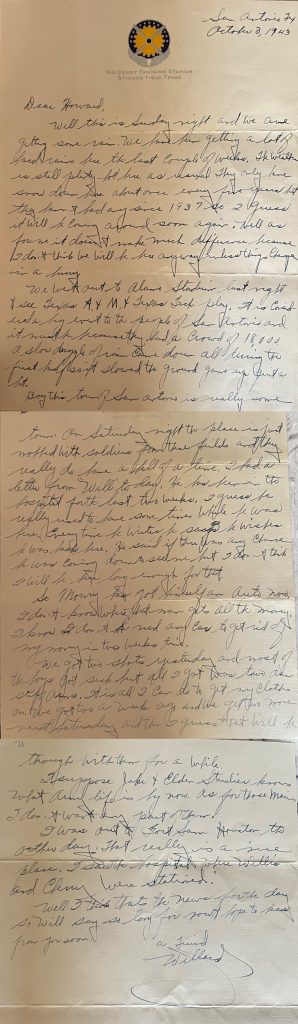 I suppose Jake & Clyde Studies knows what Army life is by now. As for those Mains I don’t want any but other. I was out to Ford San Houston the other day. That really is a nice place. I saw two Hospital where Willie and Cheny were stationed. Well I think that’s the news for the day so will say so long for now. Hope to hear from you soon!