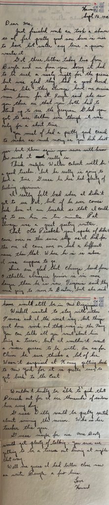 Wendell wanted to stay with either Francis and I the worst way, but things just don’t work out that way in the Navy. You can talk all you want about him being a terror, but I wouldn’t want him to be with. An as for Eleanor he sure thinks a lot of her. Waasn’t surprised at Kenny getting back to new York for it is pretty easy to get back to the East.