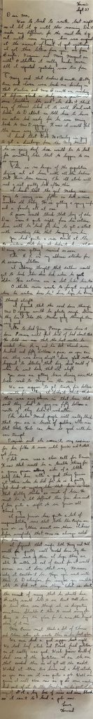 Was too tired to write last night so I let it go until this morning. Don’t make any difference for the mail don’t it go out until noon anyway. Sure was surprised at the amount of mail I got yesterday. I got three letters from you, one from Beryle, Virginia and Mary Margaret and with 5 others it really made seven. All I expected yesterday was two from you.
